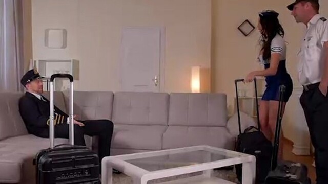 Double Penetration Delight: 2 Pilots, 1 Hot Stewardess!, Бесплатное порно видео в HD качестве