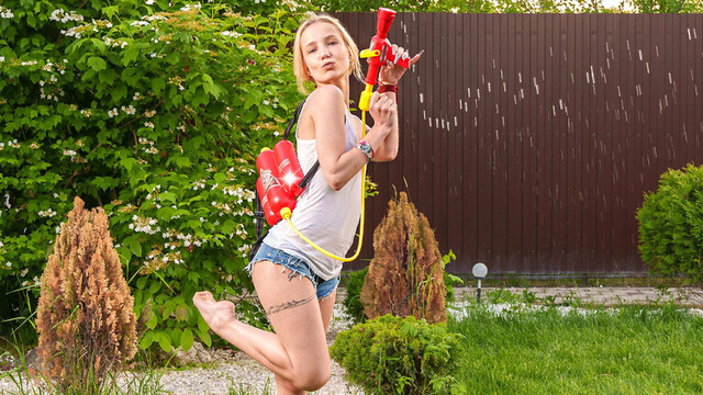 Squirt Gun Fun with Blonde Teen, Бесплатное порно видео в HD качестве